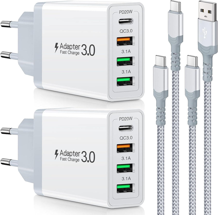 2 Stück 35W USB C Ladegerät [4-Port Upgrade], Acezeek Schnellladegerät USB Stecker mit Wandladegerät
