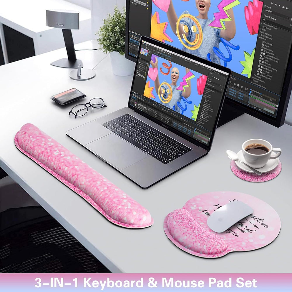 3-in-1 Mousepad Set,Acezeek Handballenauflage Tastatur,Mauspad mit Gelkissen,Cup Pad,Ergonomisches M