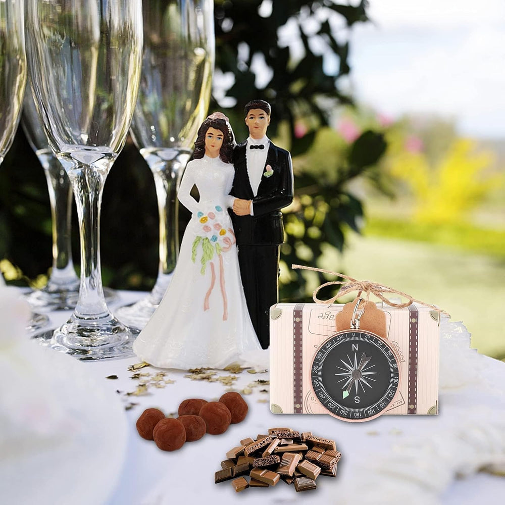 20 Stück Mini Koffer Gastgeschenke Hochzeitsbox, Vintage Kraftpapier Geschenkbox mit Kompass, Anhäng