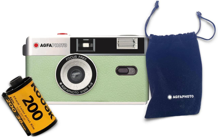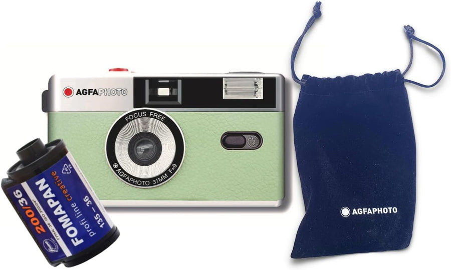 AgfaPhoto analoge 35mm Foto Kamera Black Set (B+W Film + Batterie) MINT- GREEN Kamera + Film S/W Kam