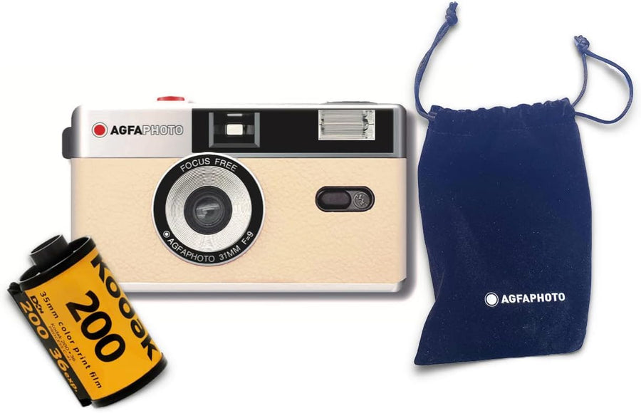AgfaPhoto analoge 35mm Foto Kamera Set (Color Film + Batterie) BEIGE Kamera + Film Color Kamera + Fi