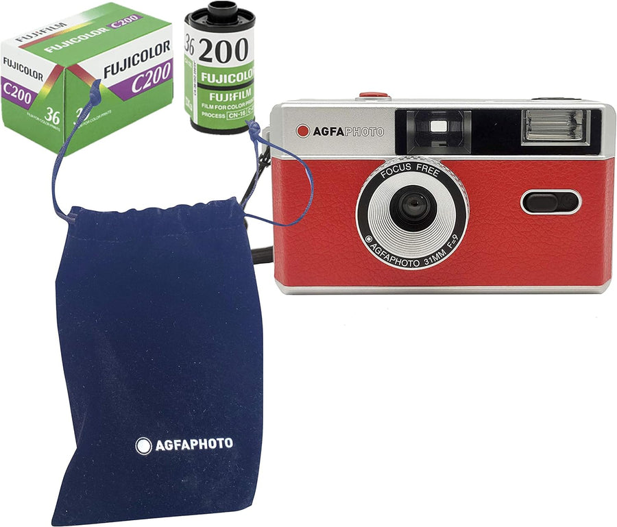 AgfaPhoto analoge 35mm Kleinbildfilm Foto Kamera rot + Farb Bilder Film + Batterie rot Set Farb Film
