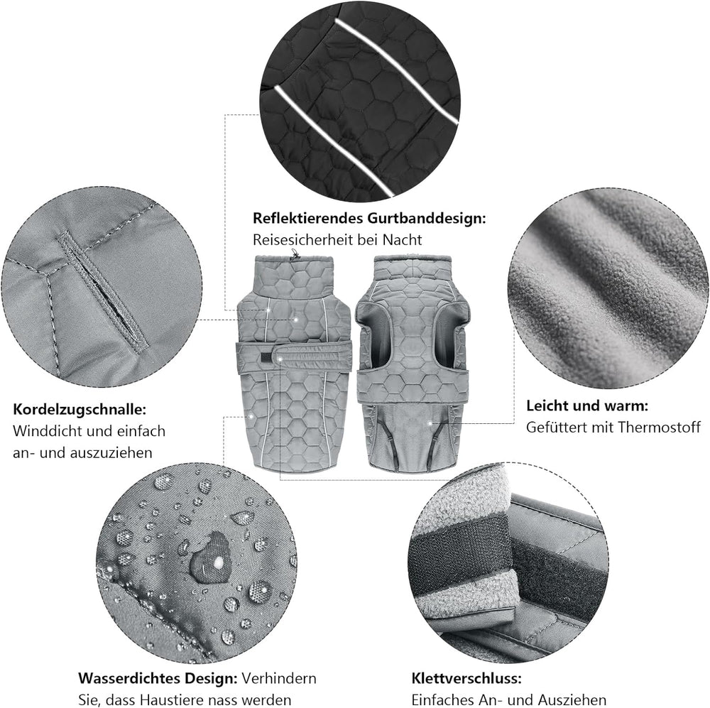 Hundejacken für den Winter Winddicht Wasserdicht 2 in 1 Outfit Kaltwettermantel Hundewestengeschirr