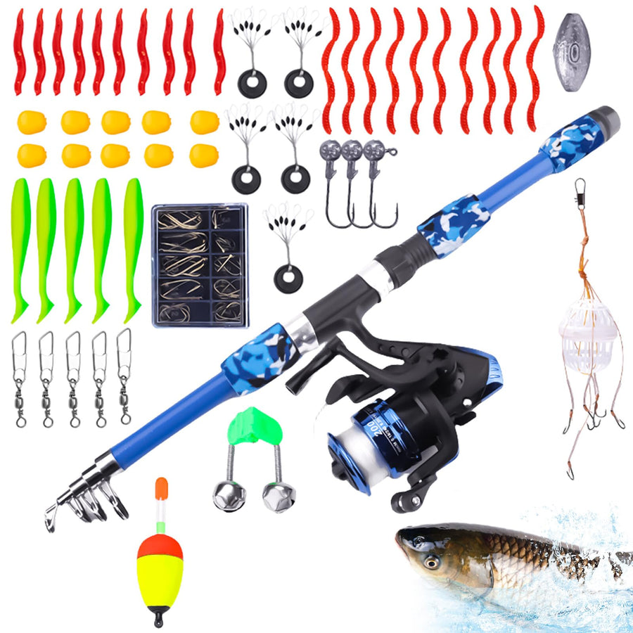 Angelset für Kinder, Kinderangel Starter Set Angelrute Set Kinder mit Angelrolle und Köder Set Angel