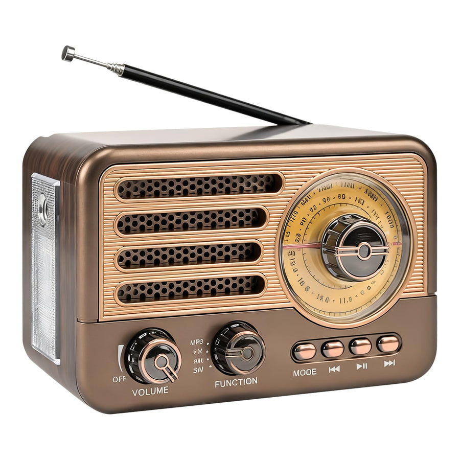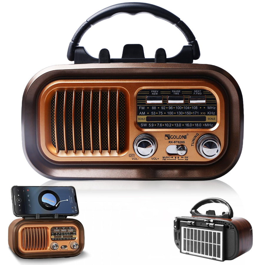 Retro Radio mit Bluetooth, AM/FM/SW Retro Radio Klein Solar Tragbarer Bluetooth Lautsprecher mit 120