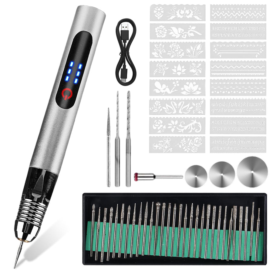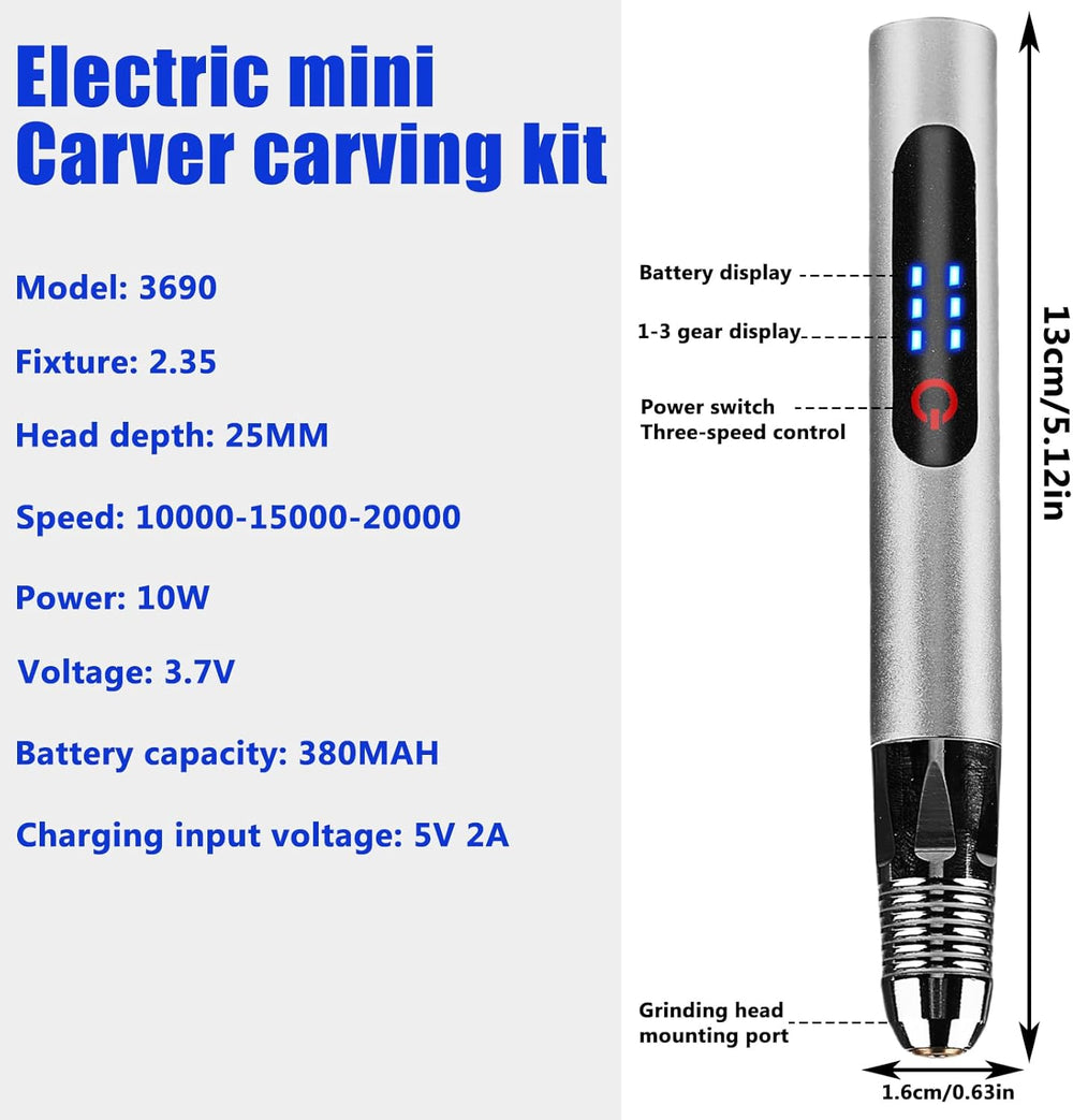 Elektrische Gravierstift, Wiederaufladierbar Gravur Werkzeug Kit, Mini Gravurwerkzeug mit Gravurzube
