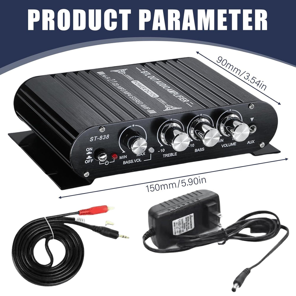 HiFi-Verstärker, 2.1CH Stereo Verstärker, RMS 20Wx2+40W ST-838 Mini Hifi Verstärker Subwoofer Ausgan
