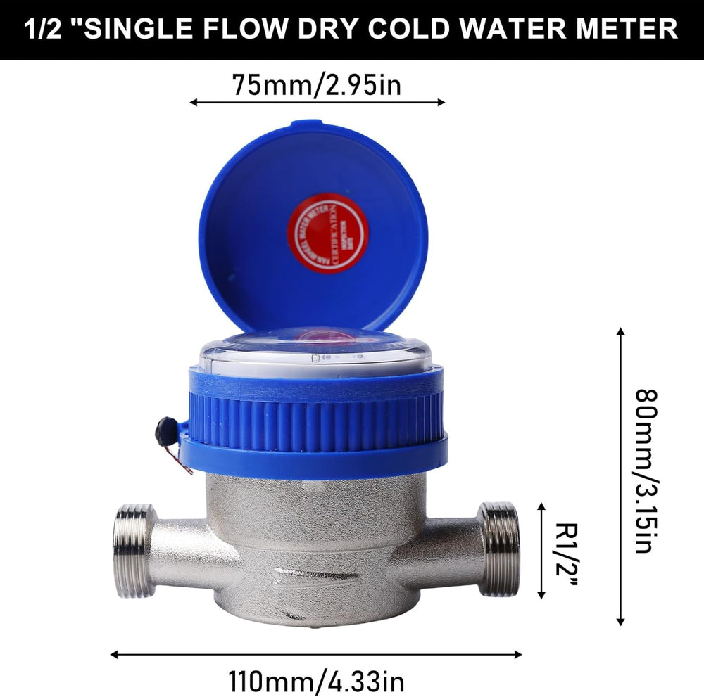 Wasserzähler Garten, 1/2 Zoll Geeicht Kalt Wasseruhr Haushalt Kaltwasserzähler mit Armaturen und Sch