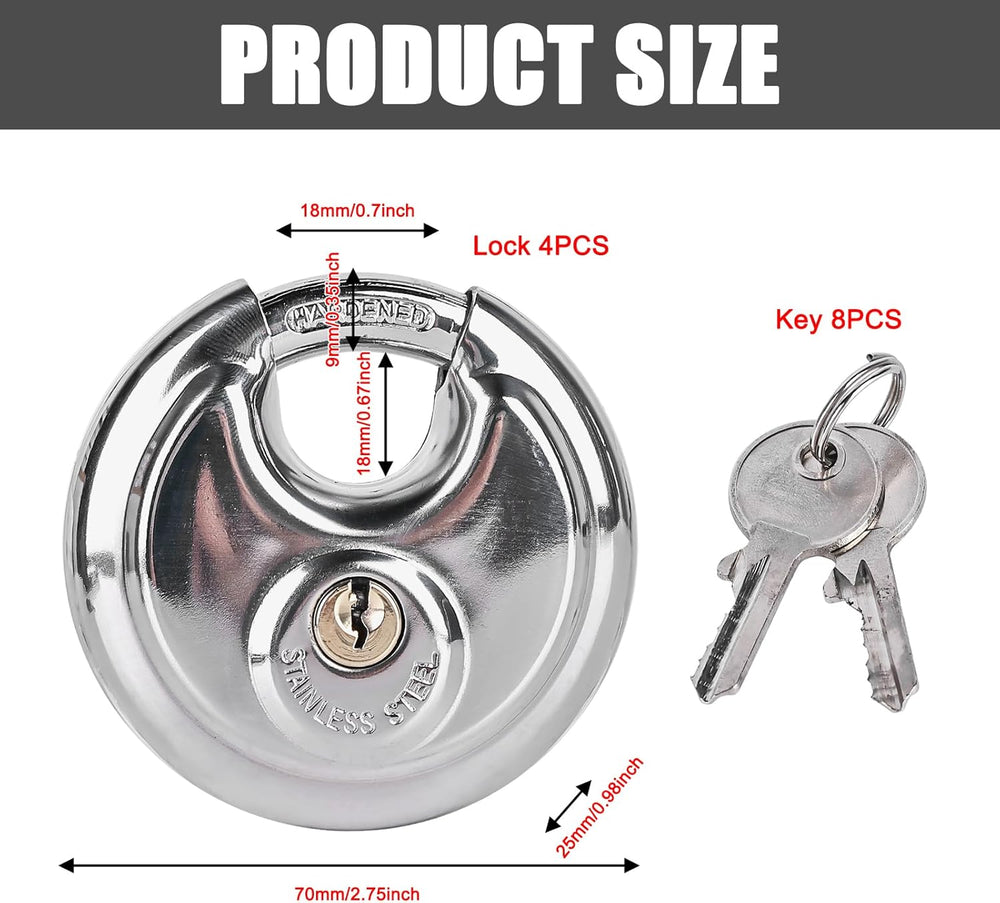 4 Stück Rundbügelschloss Vorhängeschloss 9.5 mm Bügelstärke, Vorhängeschloss mit Schlüssel, 70mm Ede