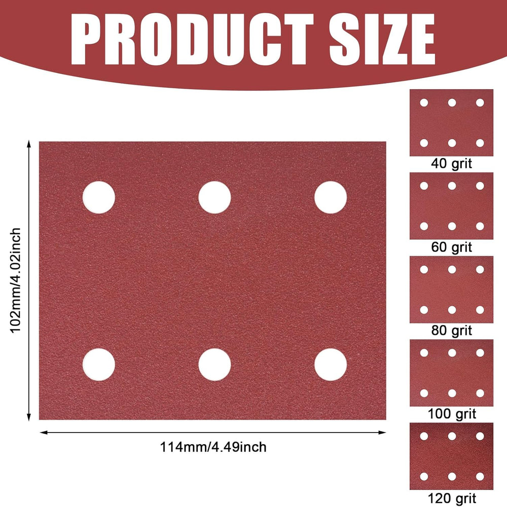 50 Stück Schleifpapiersatz, Schleifpapier Klett 102mm*114mm, 40/60/80/100/120 Körnung 6 Löcher Schle