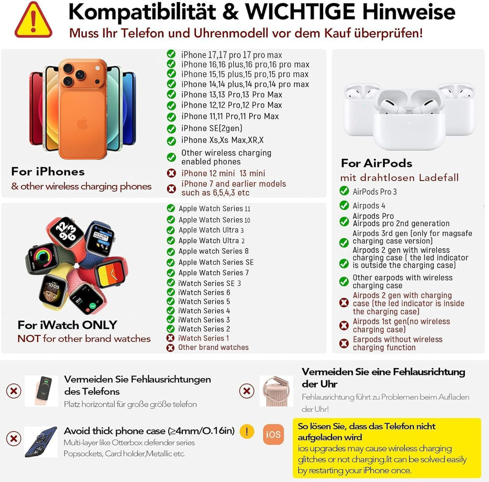 Aimtel 3 in 1 Induktive Ladestation Faltbare&Nachtlichter Kompatibel mit iPhone 17/17 Pro/17 Pro Max