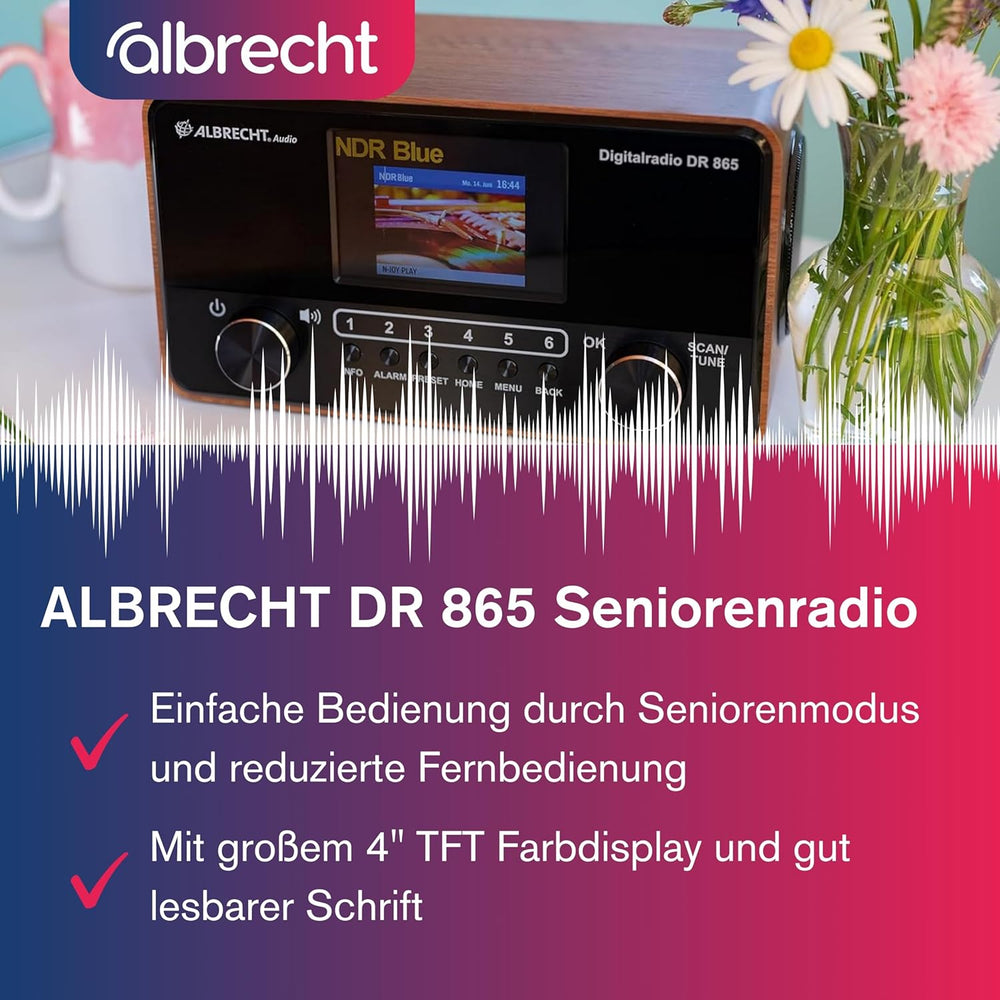 ALBRECHT DR 865 Seniorenradio mit gut lesbarem 4" Farbdisplay, brillantem Klang, seniorengerechter B