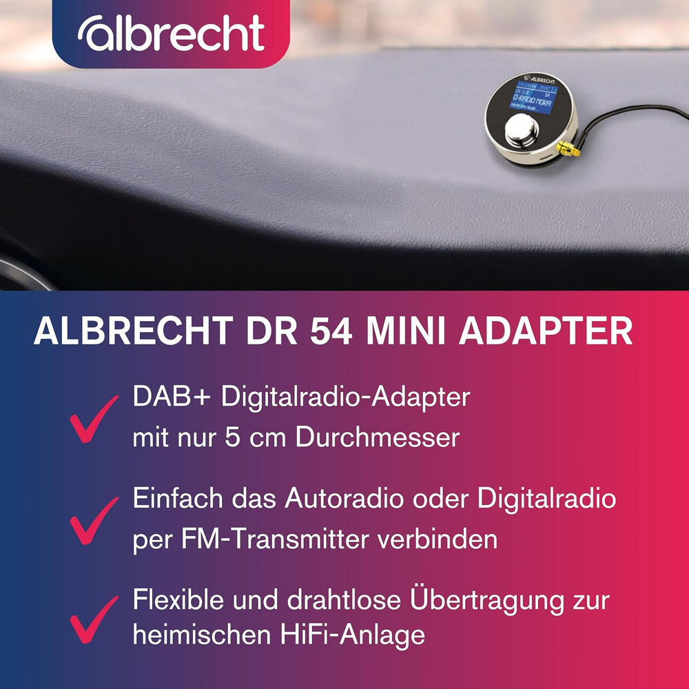 Albrecht DR 54 DAB+ Digitalradio Adapter - Kabellose Übertragung, FM Transmitter, Aux-Out, Autoradio