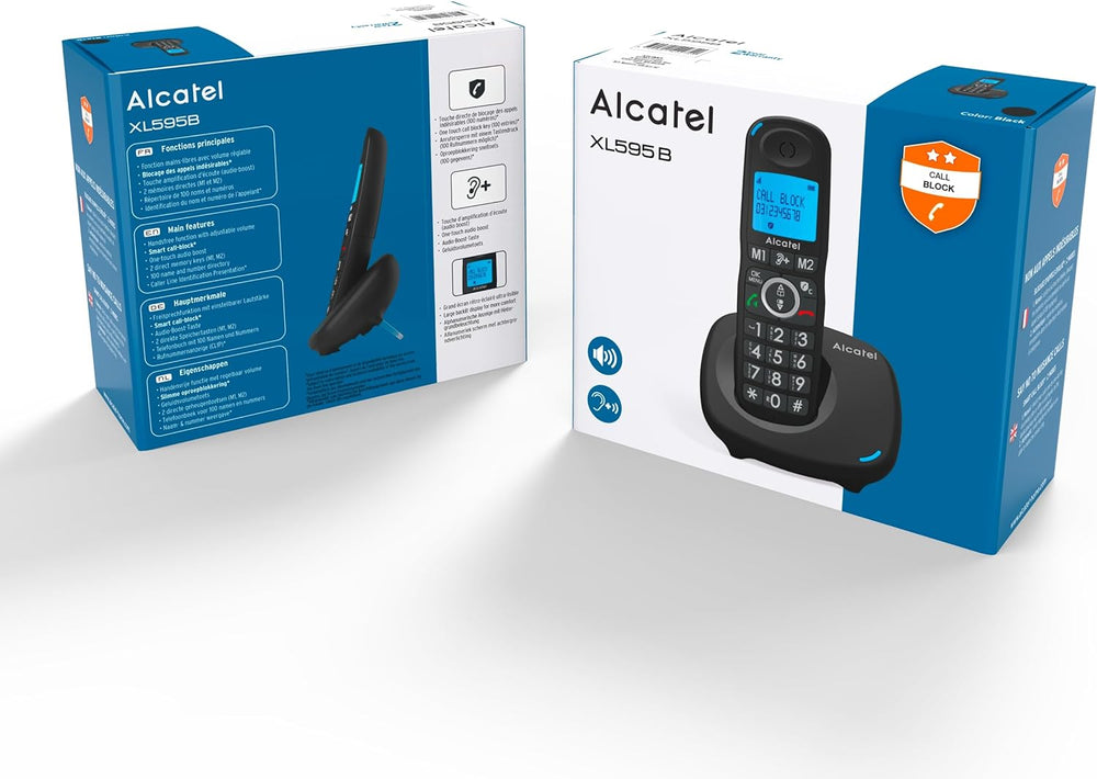 Alcatel XL595 B Schnurlostelefon mit grossen Tasten, grosses Display und Audio-Boost, Anrufsperre SO