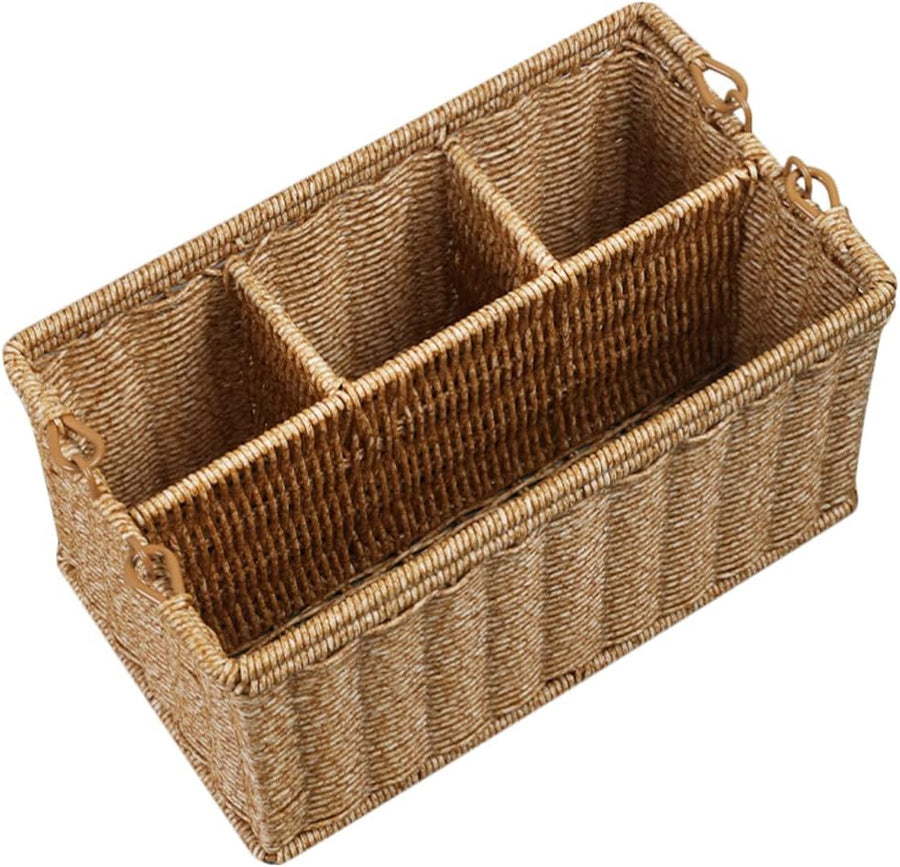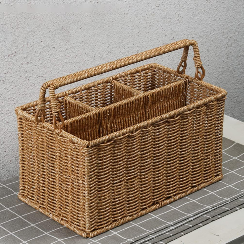 Alipis Wohnkultur Handgewebter Besteckkorb Besteckkorb mit Griff Imitierter Tragbarer Rattan-Organiz