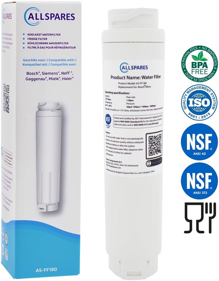 AllSpares Wasserfilter für Kühlschrank geeignet für Bosch Siemens Neff Gaggenau Balay 11034151/11028