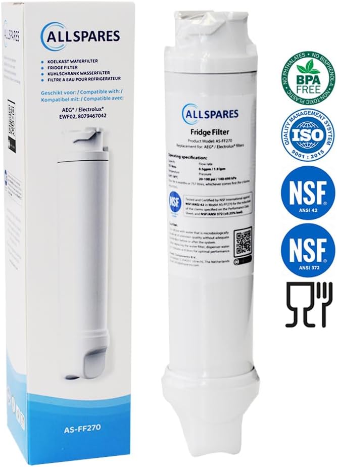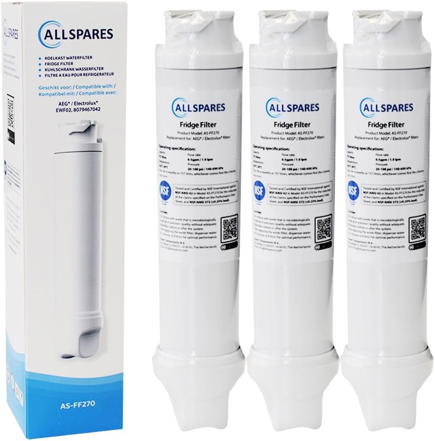 AllSpares Wasserfilter für Kühlschrank geeignet für AEG-Electrolux EWF02 / 8079467042 (3 Stück), 3 S