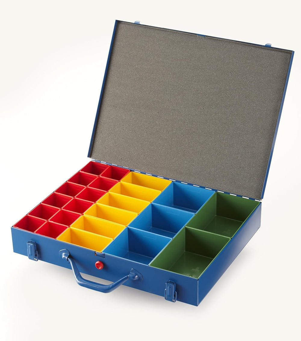 Kleinteilekoffer, 454120 Stahlblech, EuroPlus Metall 44/23x63, blau, 23 Einsätze, dicht schliessend