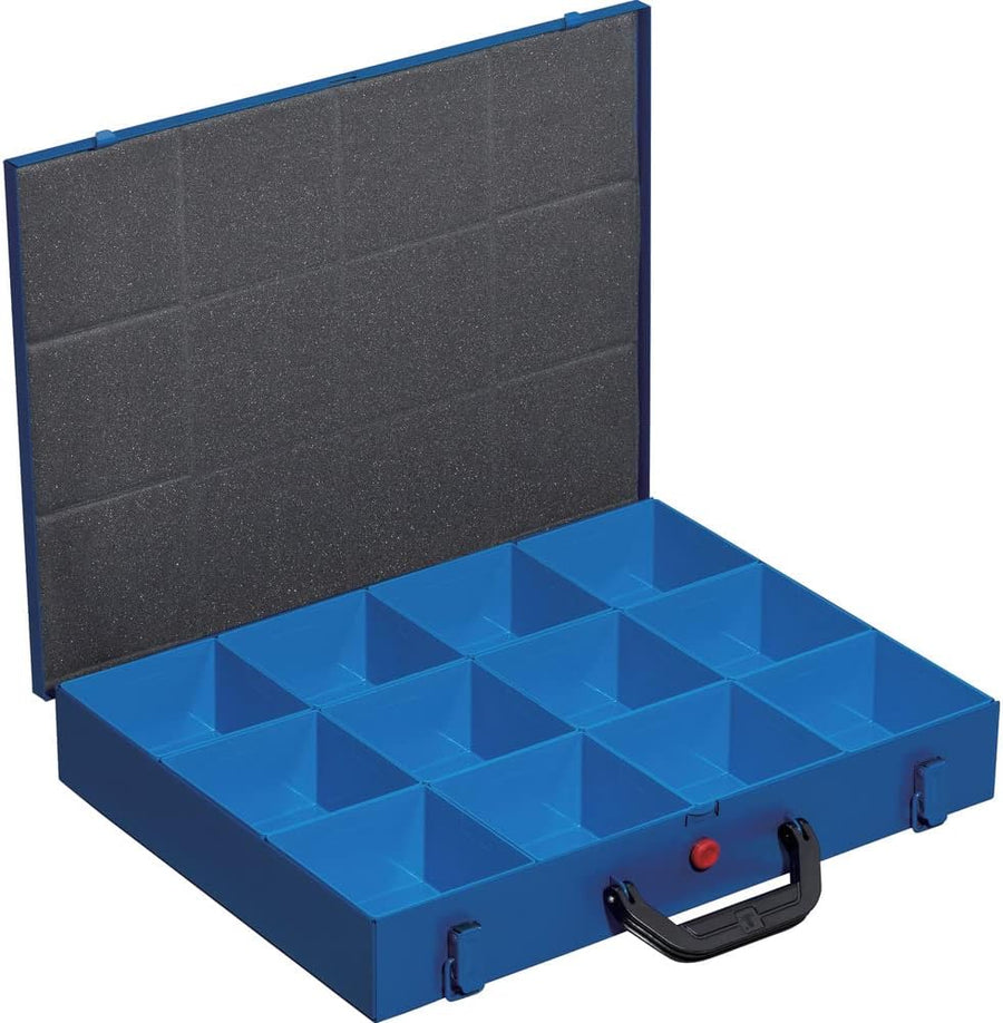 Kleinteilekoffer, Stahlblech, EuroPlus Metall 44/12x63, blau, 12 Einsätze, dicht schliessend