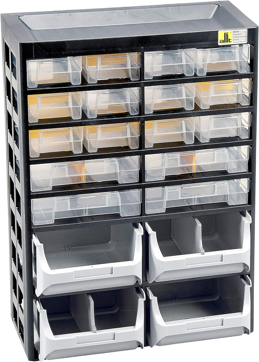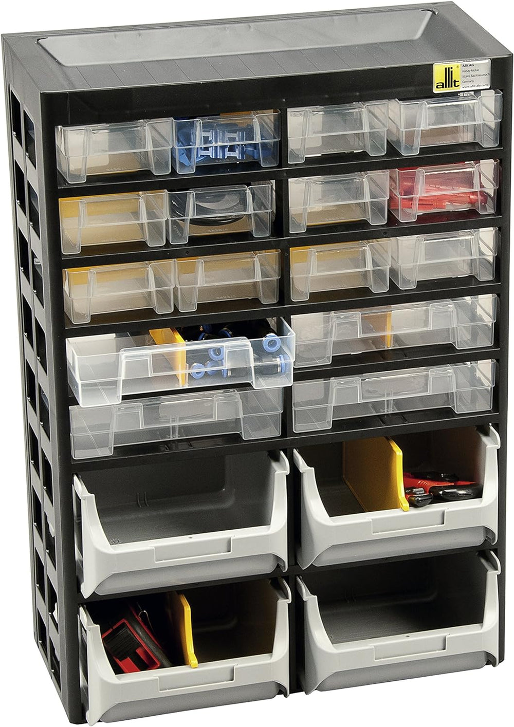 Allit 458160 Kleinteiledepot, schwarz, gelb, 16 Schübe, 4 Boxen, 14 Trenner, 16 Schübe, 4 Boxen, 14