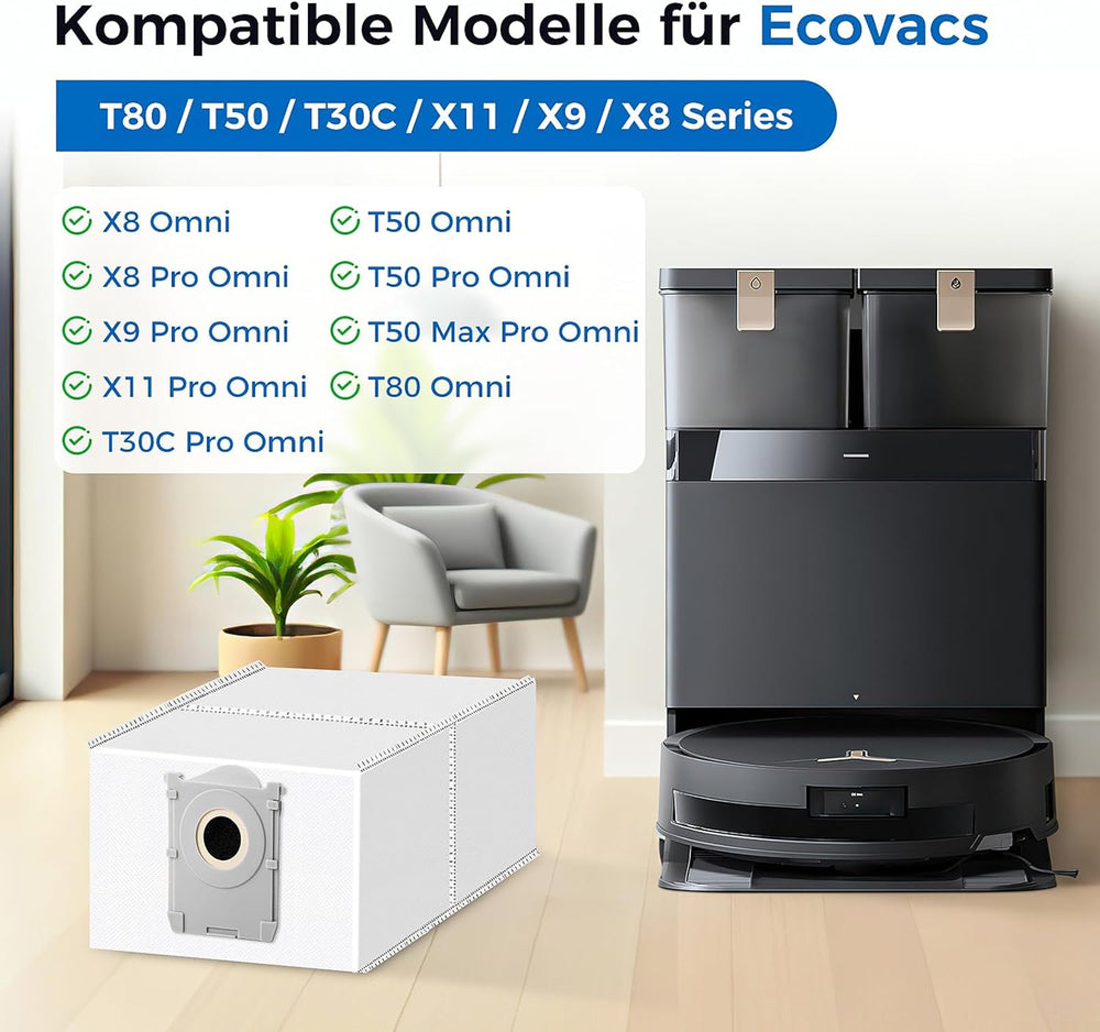 12 Stück Staubbeutel für Ecovacs Deebot X8/X9 Pro Omni/X8/X9 OMNI/X11 Pro Omni/T80 Pro Omni/T50/T50