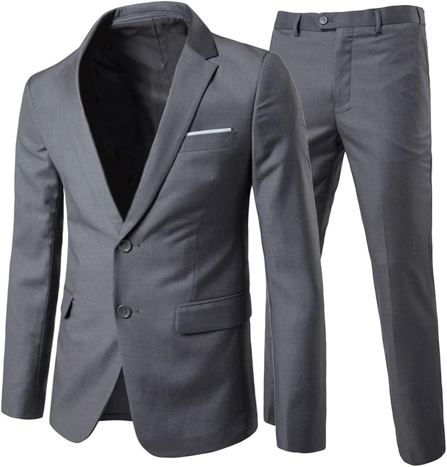 Allthemen Anzug Herren 2 Teilig Slim Fit Hochzeitanzug EIN Knopf Smoking Anzüge Sakko Hose S Grau, S