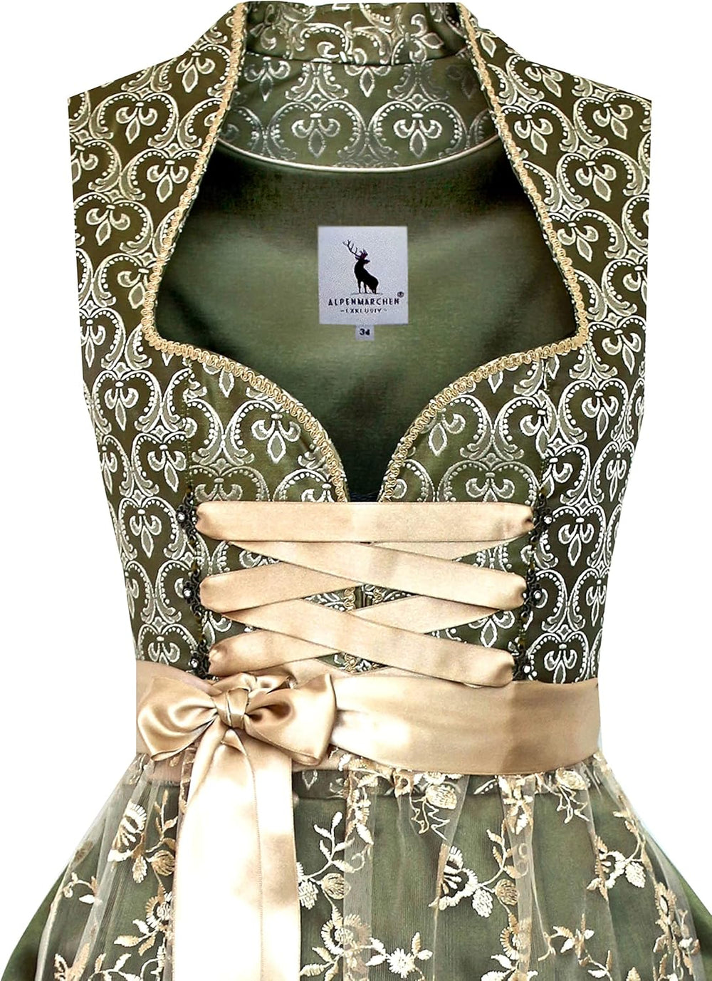 Alpenmärchen Midi Dirndl aus Exklusiver Kollektion inkl. Spitzenschürze Gr.32-54 - ALM660 36 Grün-cr