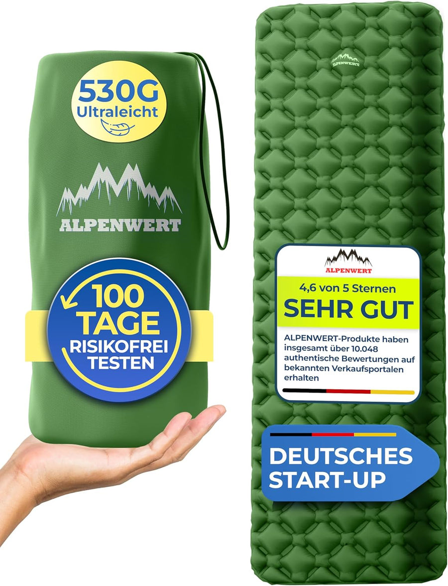 Alpenwert® Isomatte Outdoor [Kleines Packmass & Ultraleicht] Luftmatratze perfekt für Camping, Wande