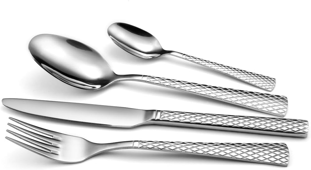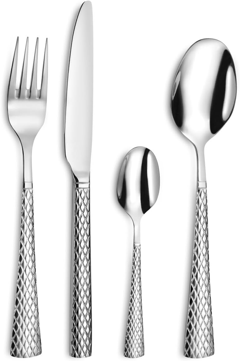 Amefa Besteck QUADRILLE, stilvolles Rautenmuster, Zisele-Dekor, Edelstahl 18/0 glänzend, 24-teilig