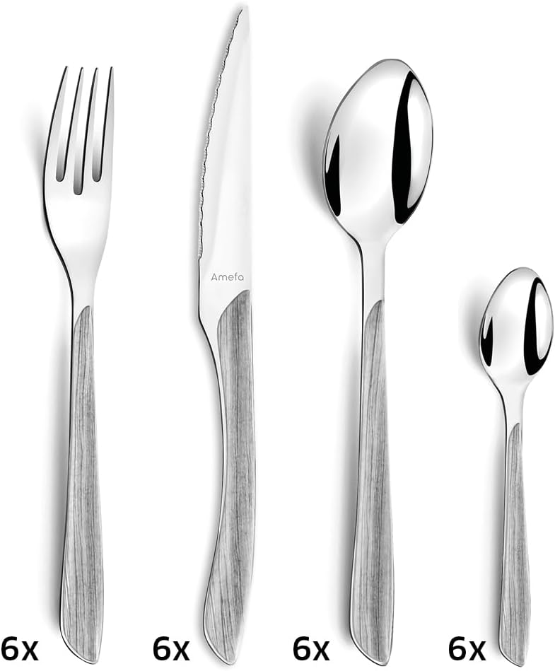 Amefa ECLAT Besteck Set | NATURE Grau Holz | Essbesteck 24-teilig für 6 Personen | Edelstahl rostfre