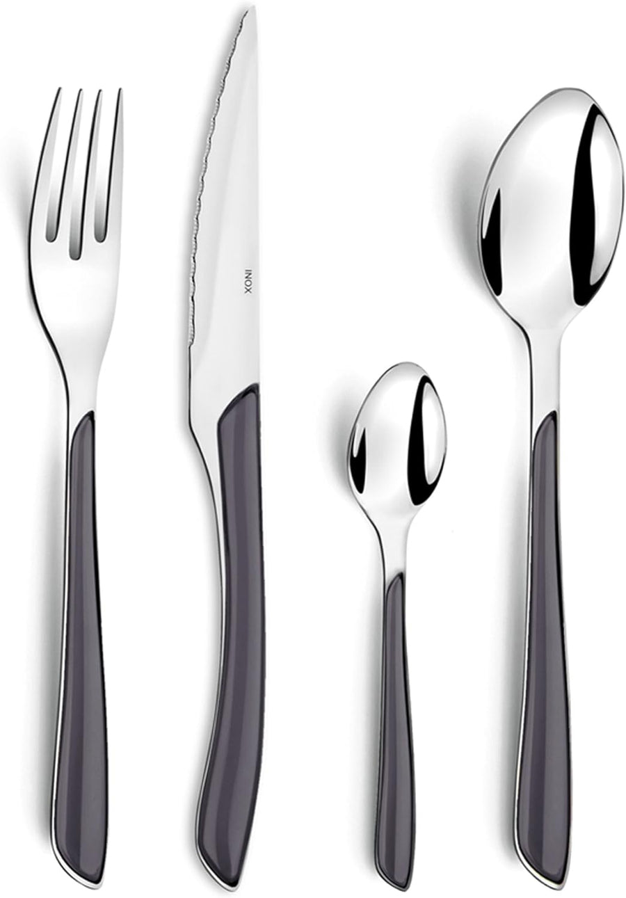 Amefa ECLAT Besteck Set , Grau , Essbesteck 24-teilig , für 6 Personen , Edelstahl rostfrei , Griffe