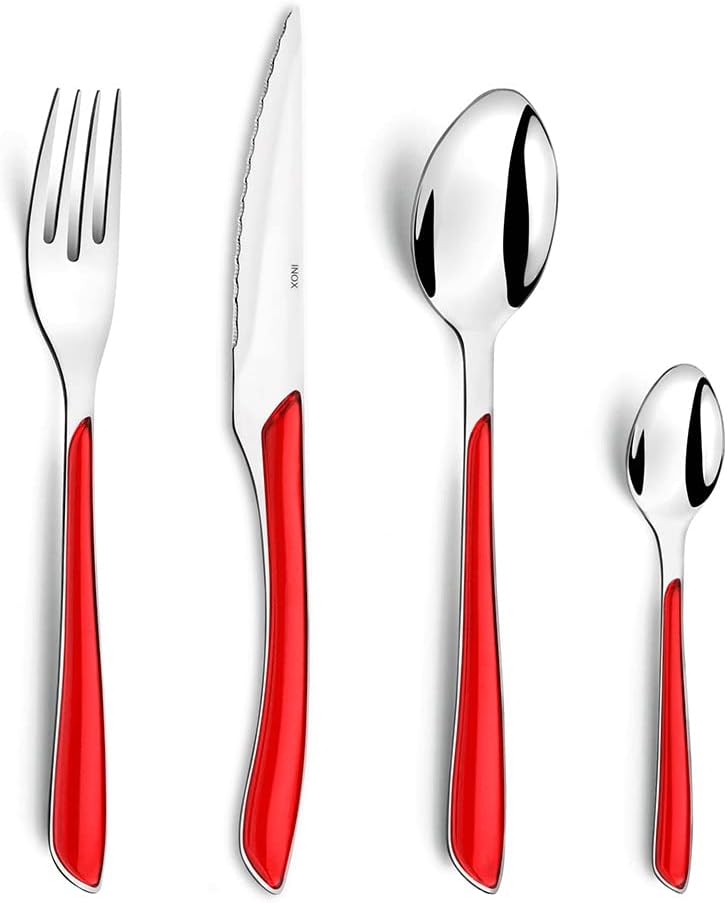 Amefa ECLAT Besteck Set , Rot , Essbesteck 24-teilig , für 6 Personen , Edelstahl rostfrei , hochwer