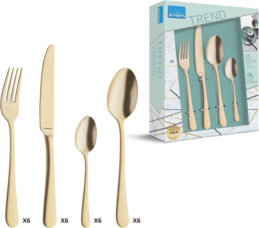 Amefa AUSTIN GOLD Besteckset 24-teilig | PVD-veredeltes goldenes Besteck Set | farbigesTafelservice
