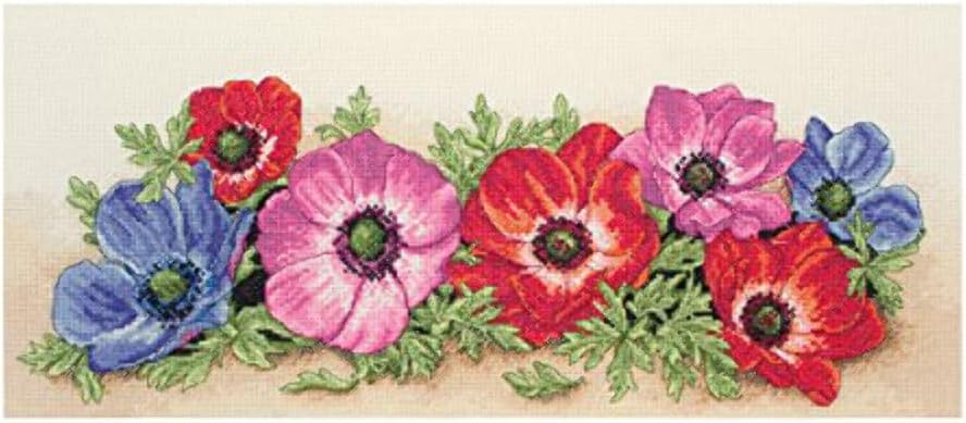 Anchor Stichset Kreuzstich-Set, 100% Baumwolle, Mehrfarbig, 140x240cm Poppy, Daisy and Bluebell, Pop