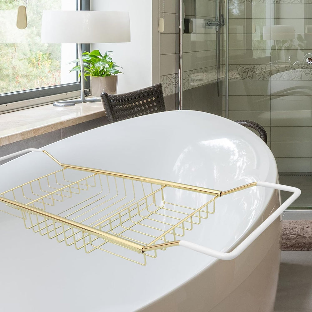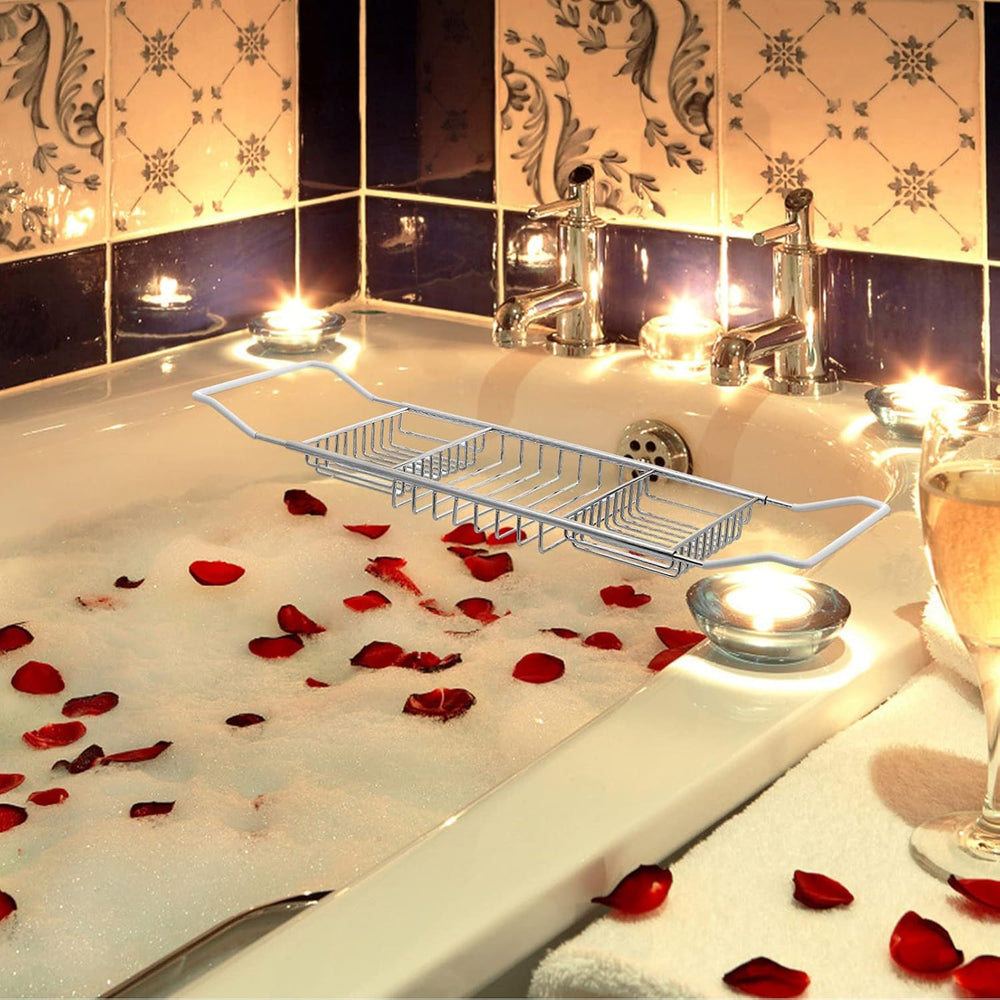 Angoily Badewanne Aus Edelstahl Erweiterbares Badewannenregal Zur Aufbewahrung Von Büchern Getränken