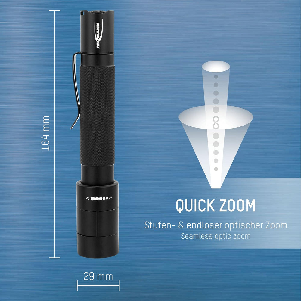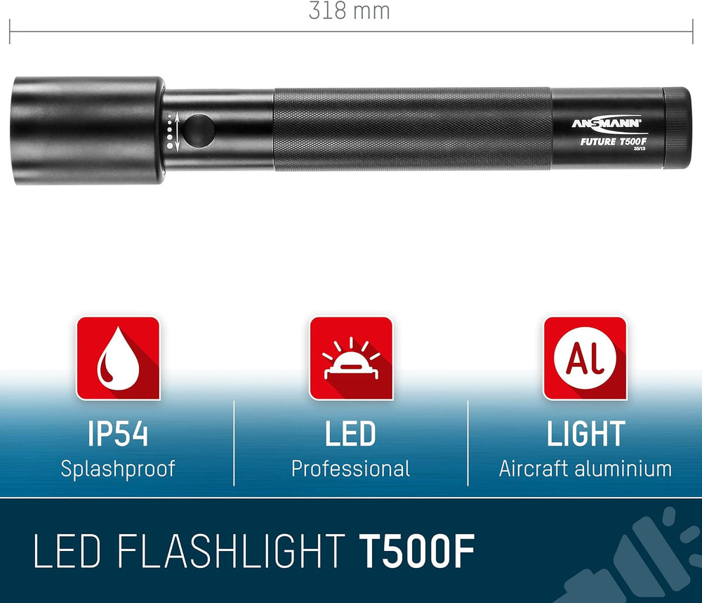 ANSMANN LED Taschenlampe T500F mit 970 Lumen - Handlampe stufenlos fokussierbar, robust, dimmbar, 19