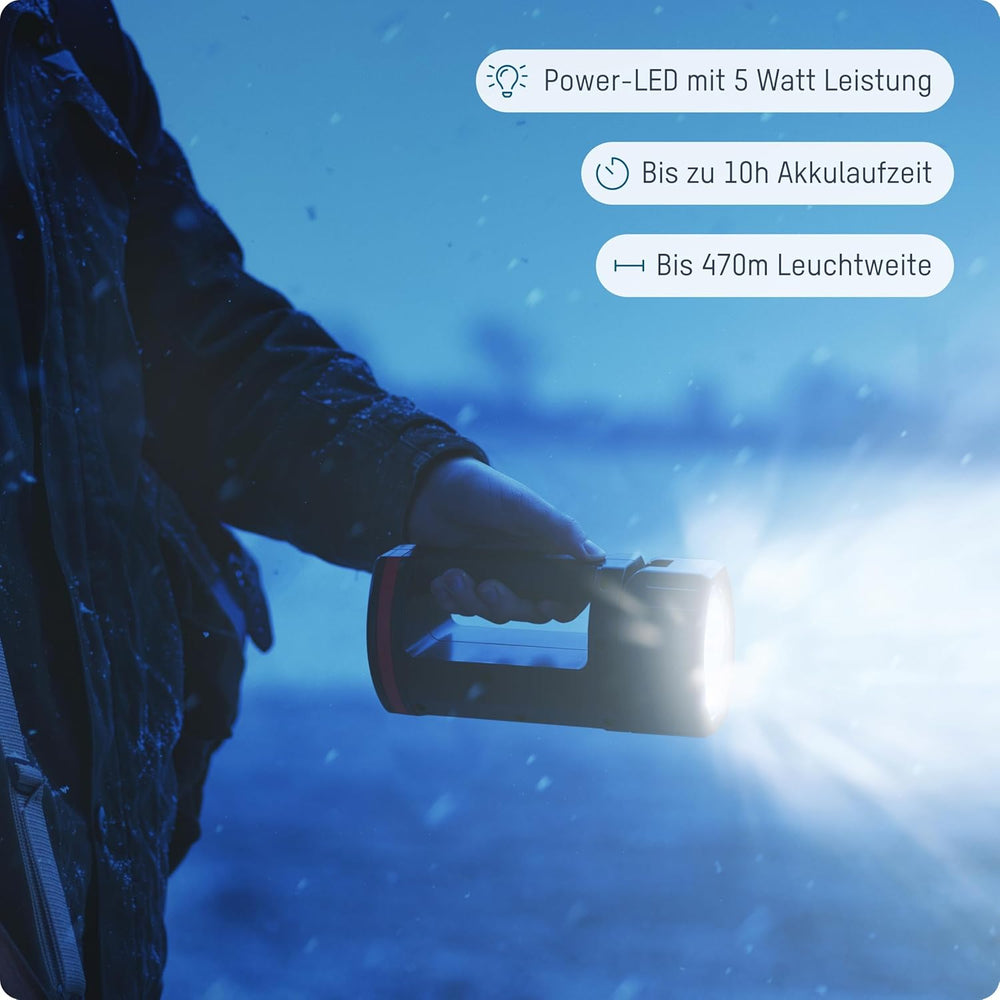 ANSMANN LED Handscheinwerfer Akku mit 10400mAh, automatische Notbeleuchtung bei Stromausfall, bis zu
