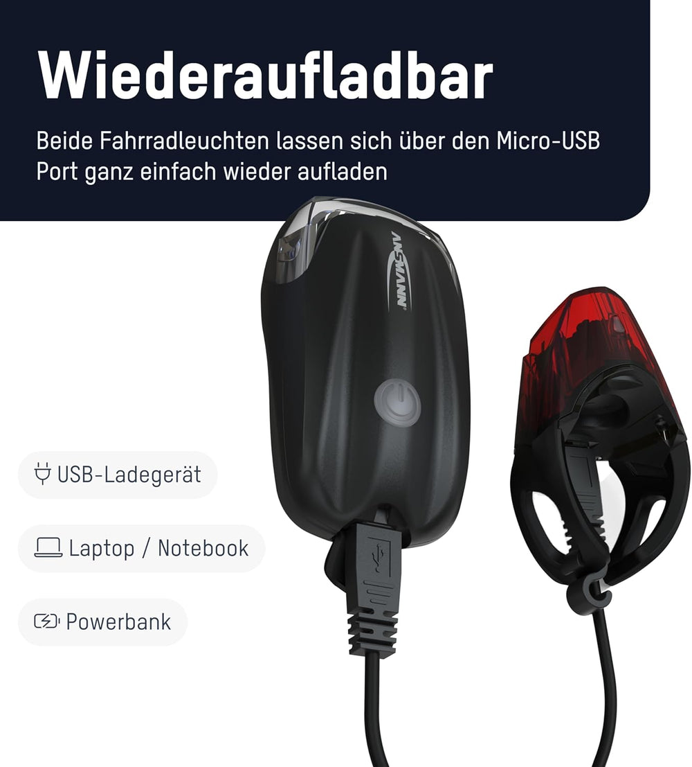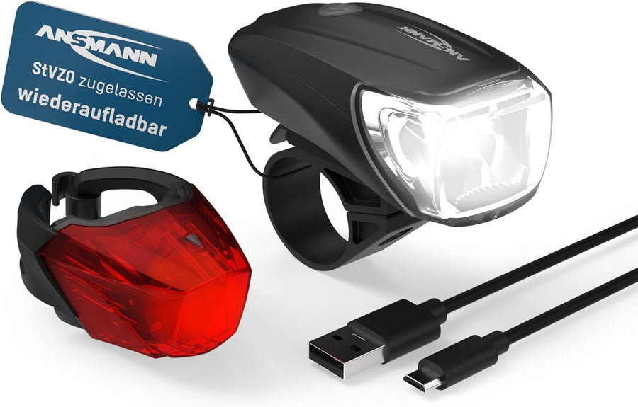 ANSMANN Fahrradlicht Set StVZO zugelassen mit CREE LED / 140 m Leuchtweite 35 Lux 170 Lumen IPX4 Akk