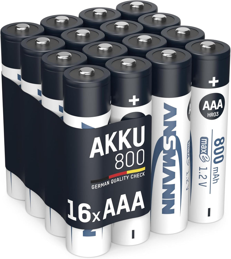 ANSMANN Akku AAA Micro 800mAh 1,2V NiMH 16 Stück für Geräte mit hohem Stromverbrauch - Wiederaufladb