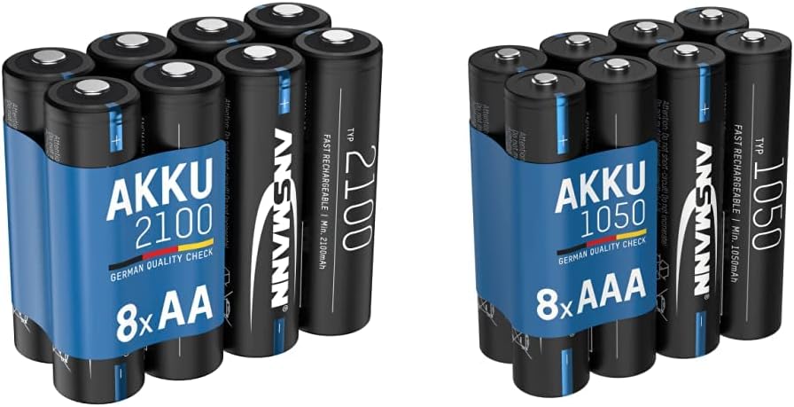 ANSMANN Akku AA 2100mAh NiMH 1 & Akku AAA 1050mAh NiMH 1,2V - Micro AAA Batterien wiederaufladbar, h