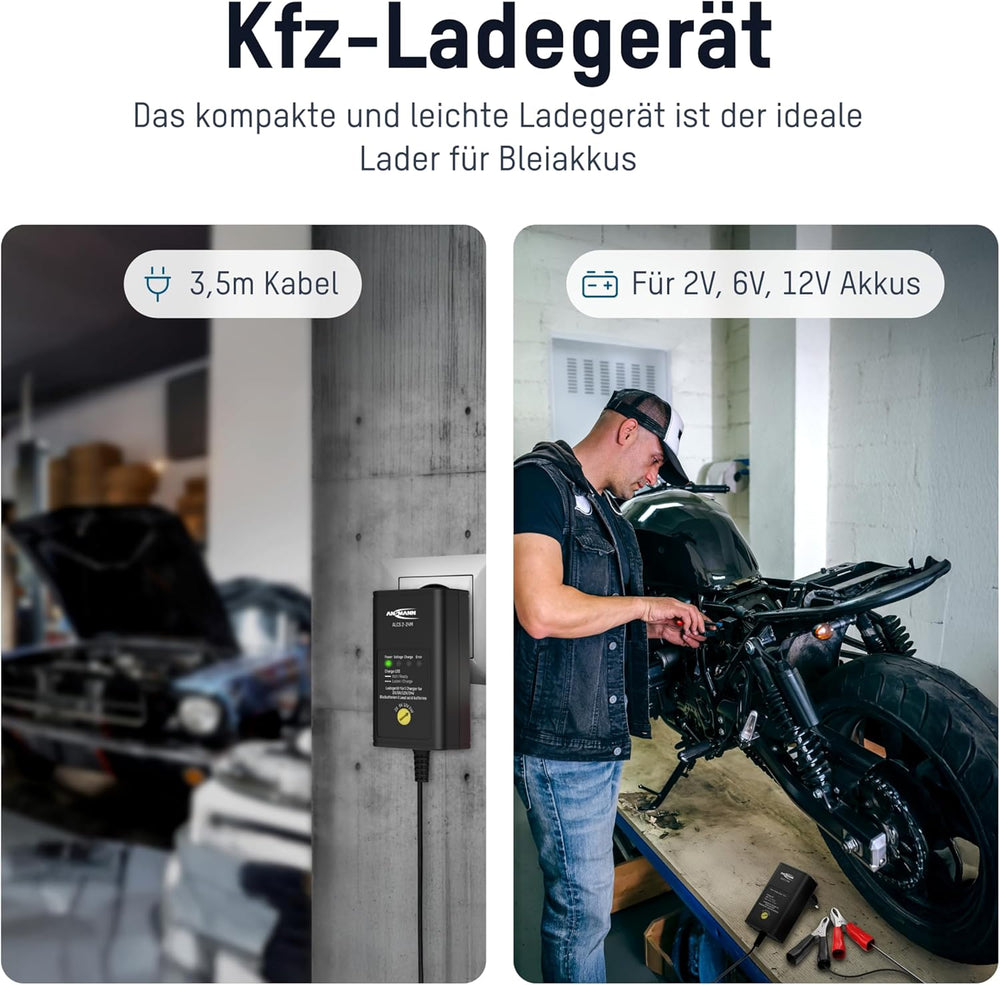 ANSMANN Batterie Ladegerät 2V/6V/12V mit Erhaltungsladung zum Einlagern von Blei Akkus (Gel, Wet, MF
