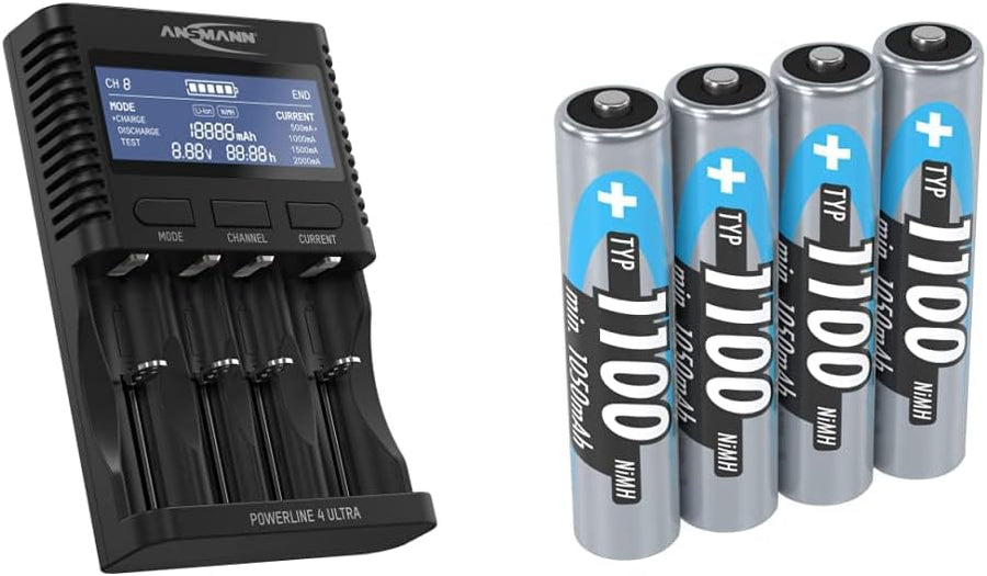 ANSMANN Comfort Plus Akkuladegerät + 4× AA 2800mAh Akkus- kompatibel für 1-4 NiMH Akkus Micro AAA/Mi