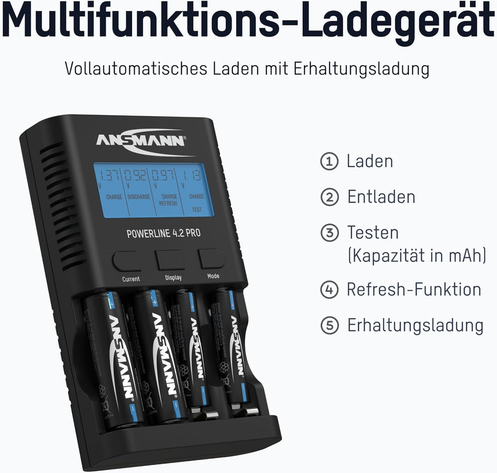 ANSMANN Batterieladegerät für 4X AA/AAA NiMH Akkus - Ladegerät mit 5 Ladeprogrammen: Laden, Entladen