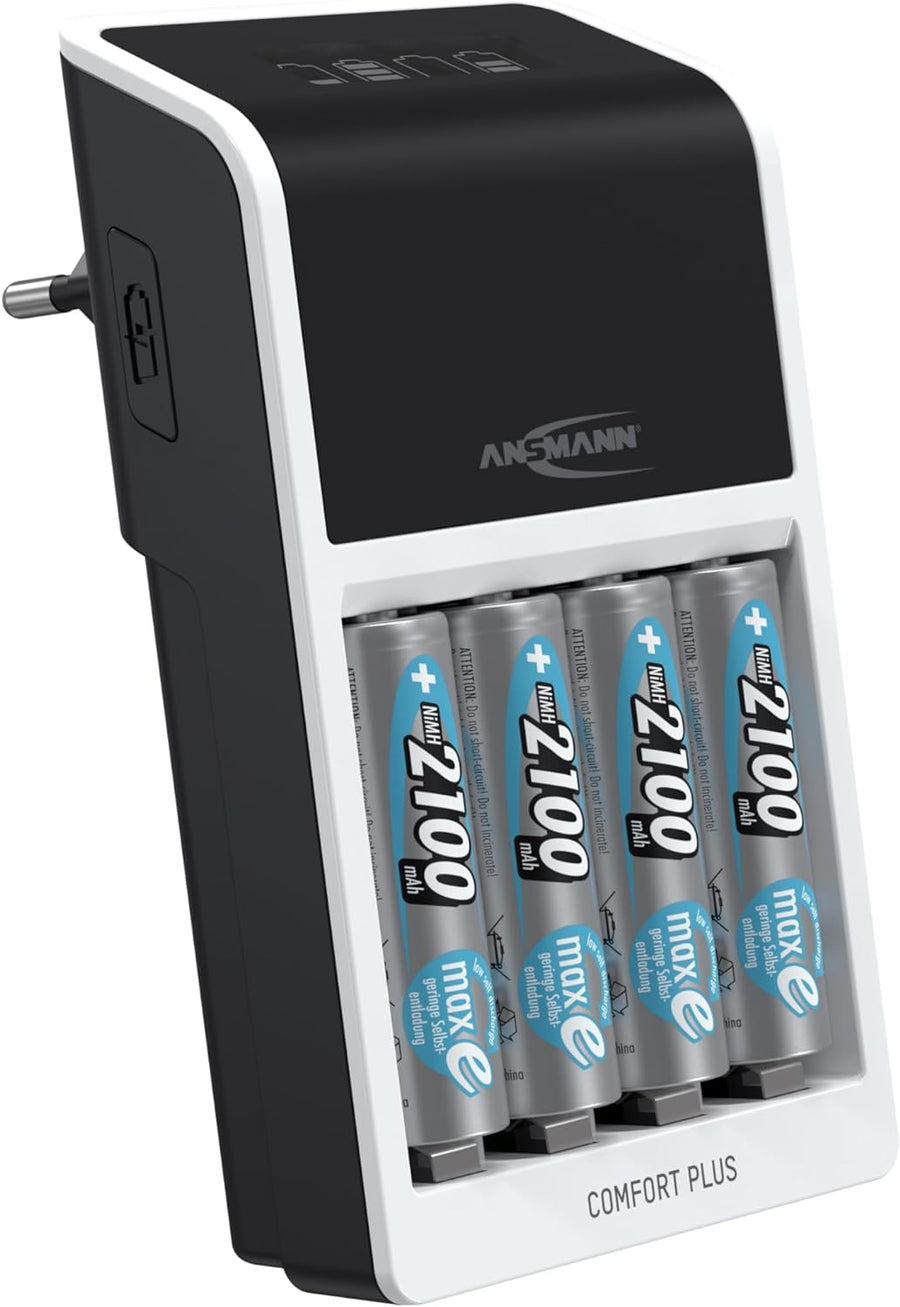 ANSMANN Comfort Plus Akkuladegerät + 4× ANSMANN AA 2100mAh Akkus- kompatibel für 1-4 NiMH Akkus Micr