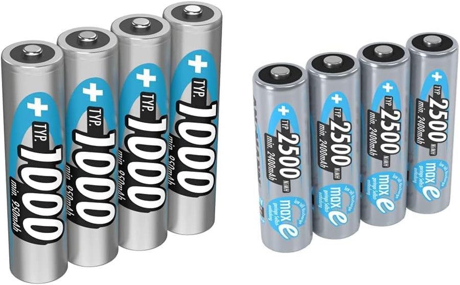 ANSMANN Akku AAA Micro Typ 1000mAh - 1,2V - Leistungsstarke NiMH AAA Akkus - 4 Stück & Akku AA 2500
