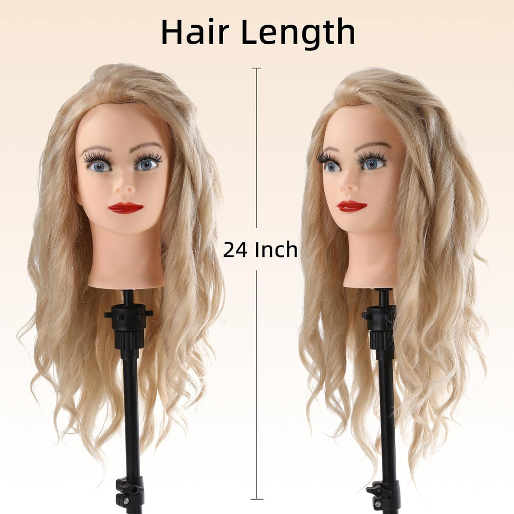 Frisierkopf 70% Echthaar Übungskopf 24 Zoll Frisieren Trainingsköpfe für Friseure Ausbildung Kopf Mi