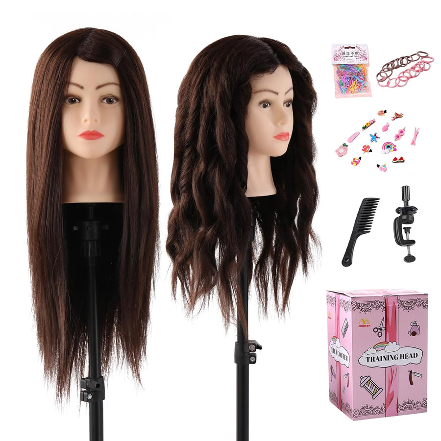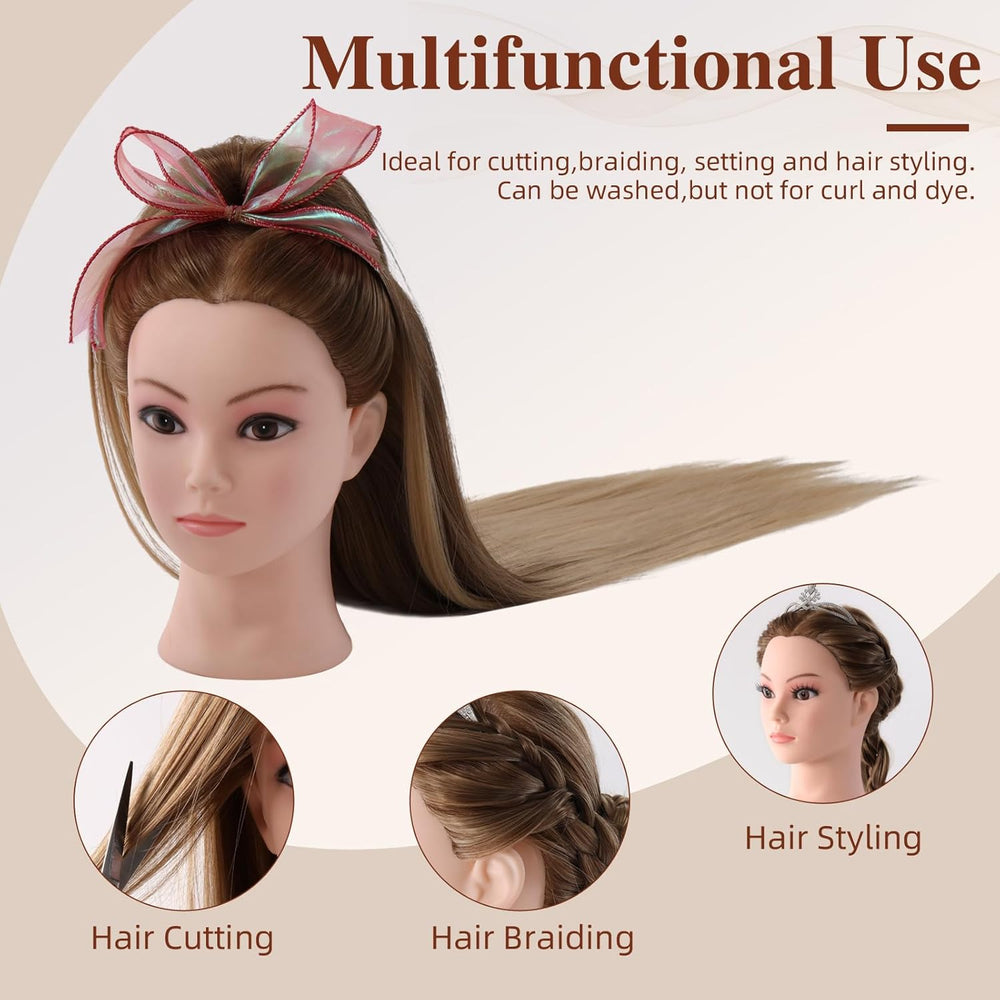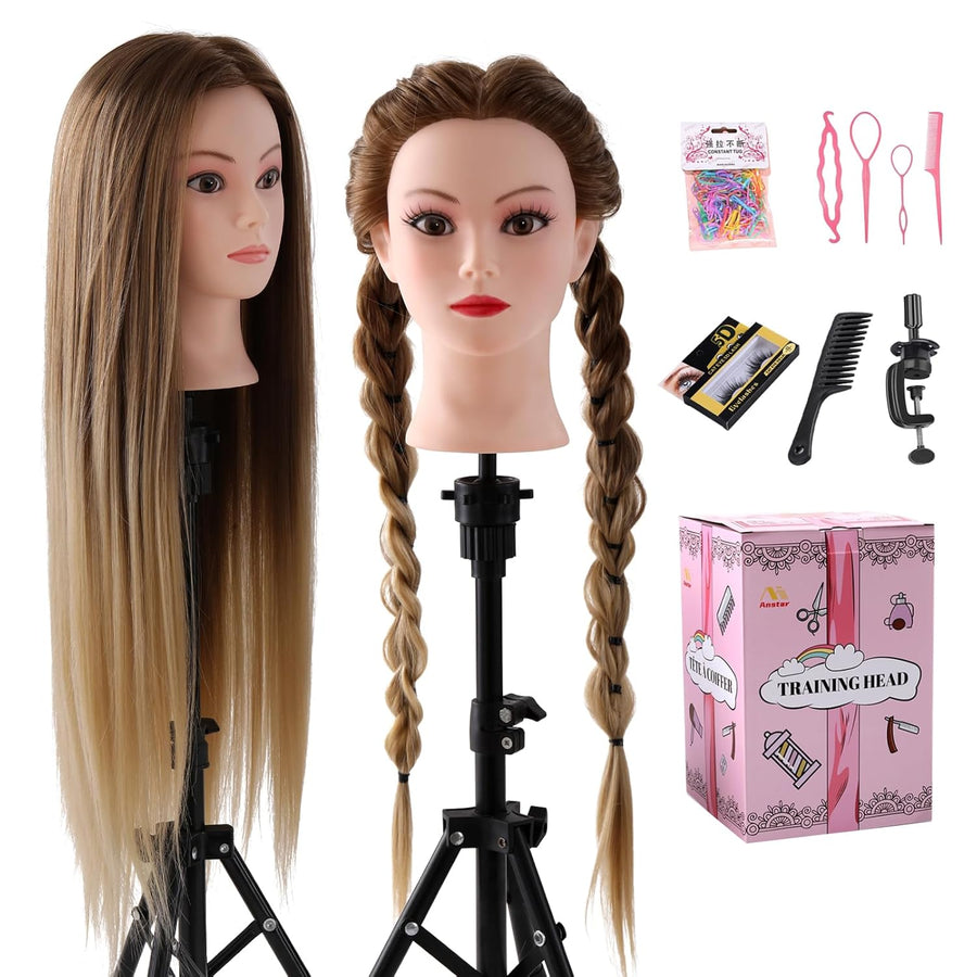 Frisierkopf 100% Synthetisches Haar übungskopf Friseur 26” Trainingsköpfe Puppenkopf Friseur Kopf Mi