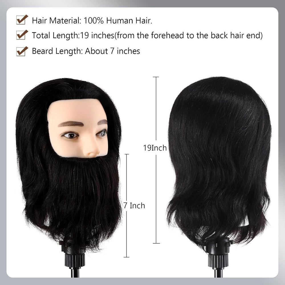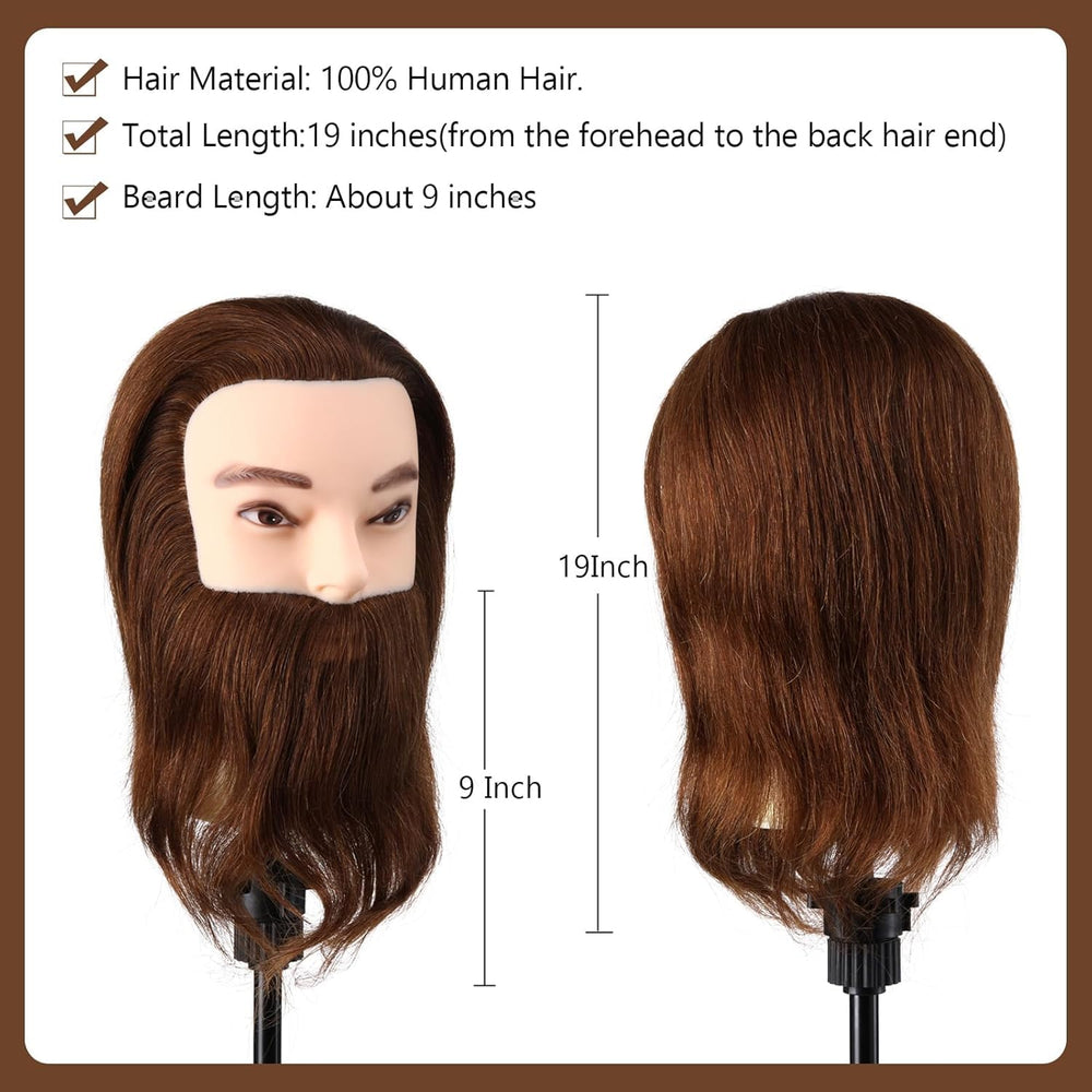 Mann Frisierkopf 100% Echthaar mit Bart Männlich Übungskopf Echthaar Friseur Kopf Puppenkopf Mannequ