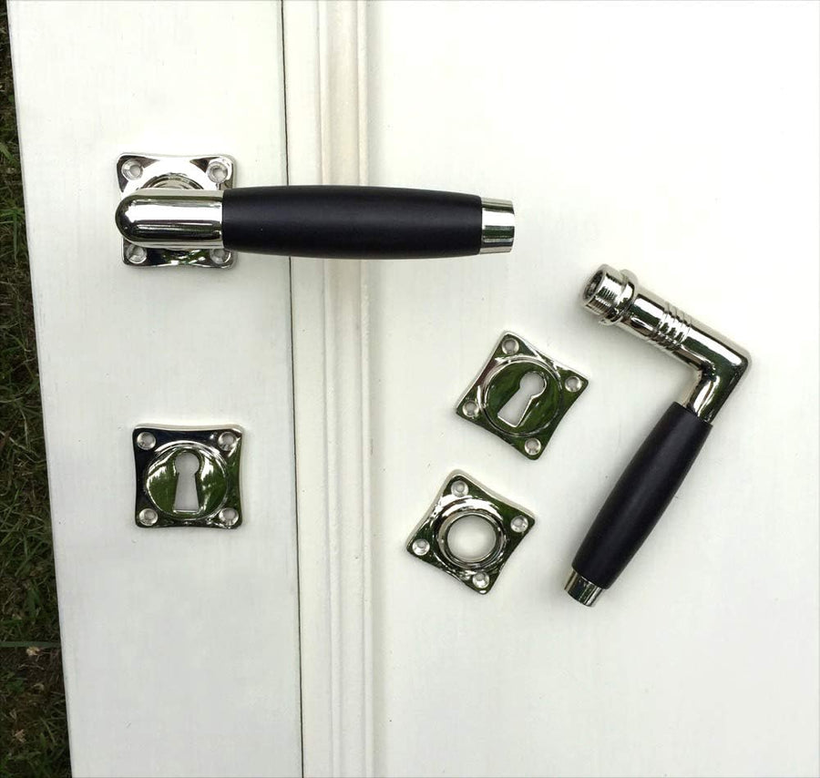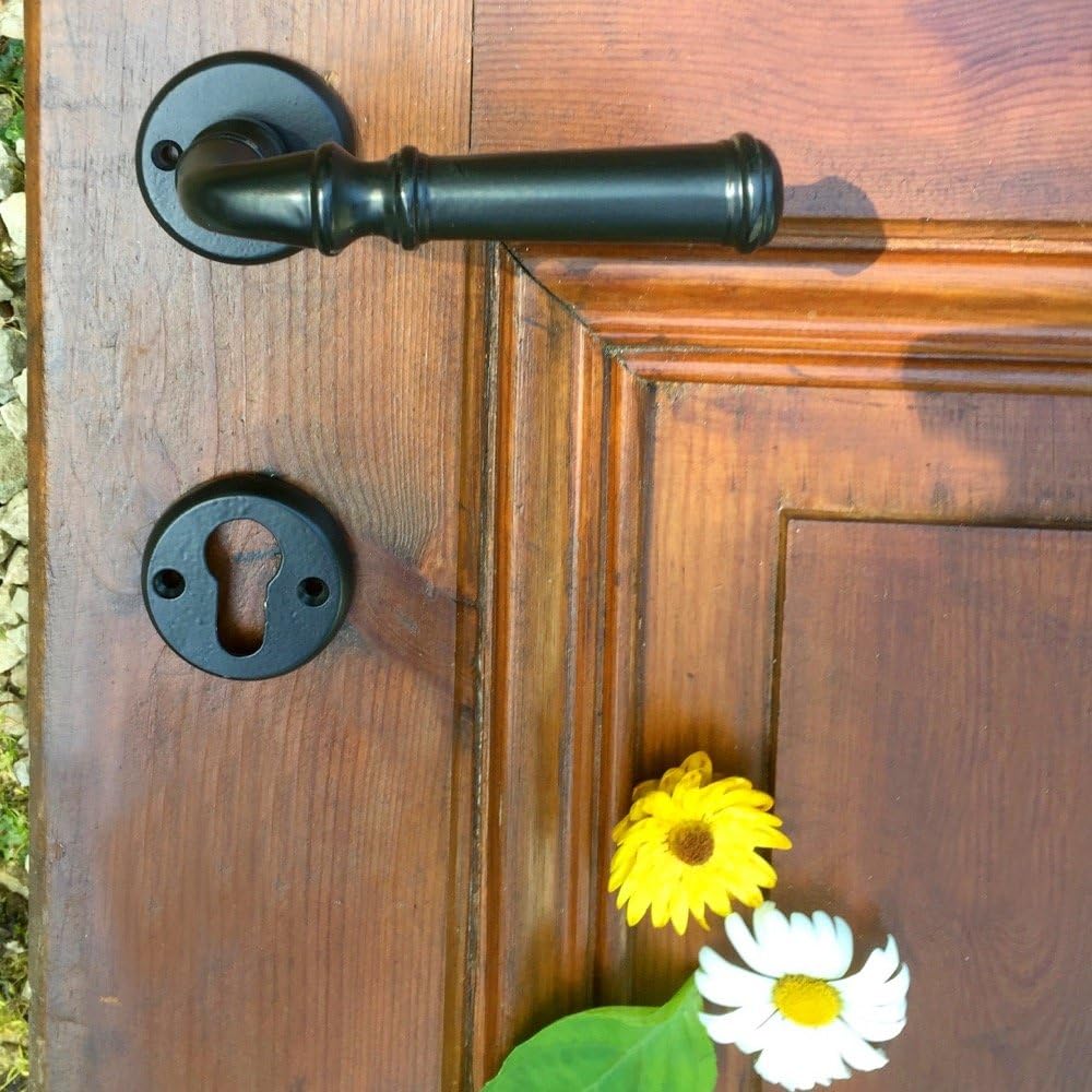 Antikas - Schwarze Türgarnitur für die Haustür mit Rosetten - wasserabweisender