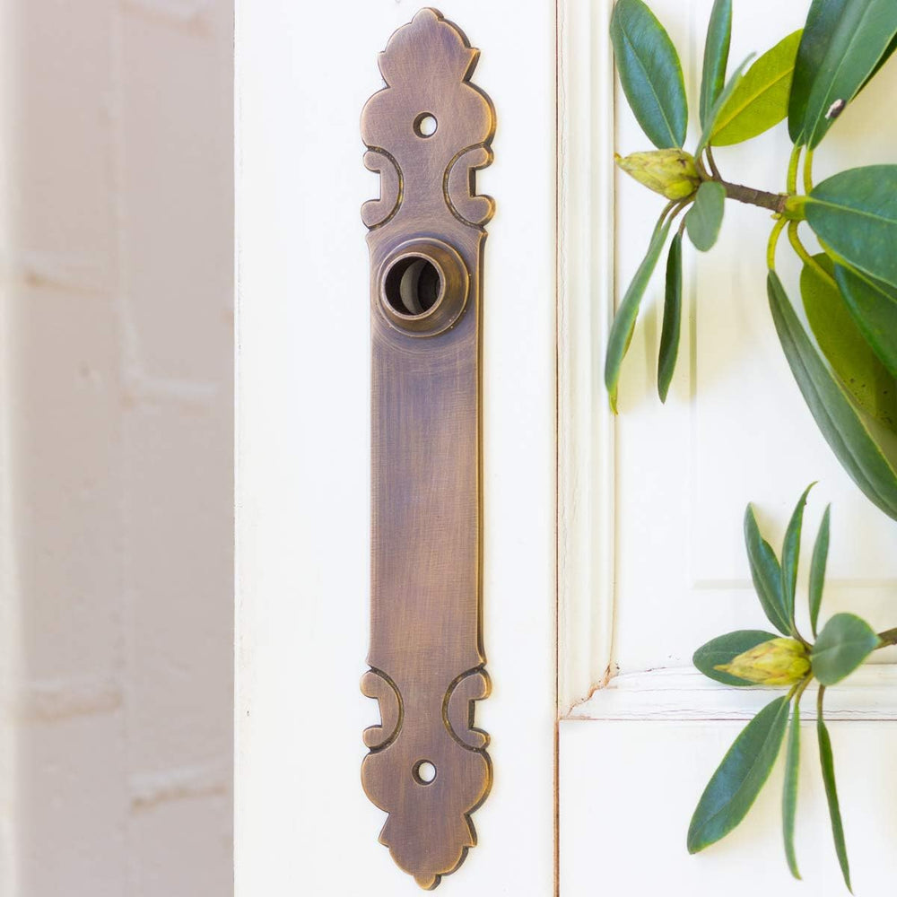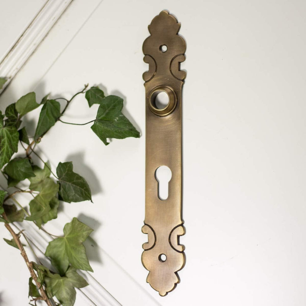 Antikas - Langschild Kotten in Messing patiniert, Biedermeier Türbeschag
